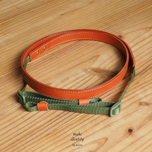 【特別仕様】 <革色:コハク(裏地:黒革)><標準10mm幅テープ色:カーキ> Slimカメラストラップ