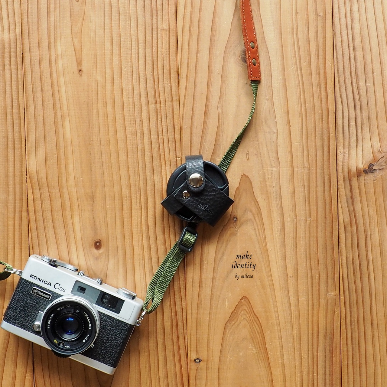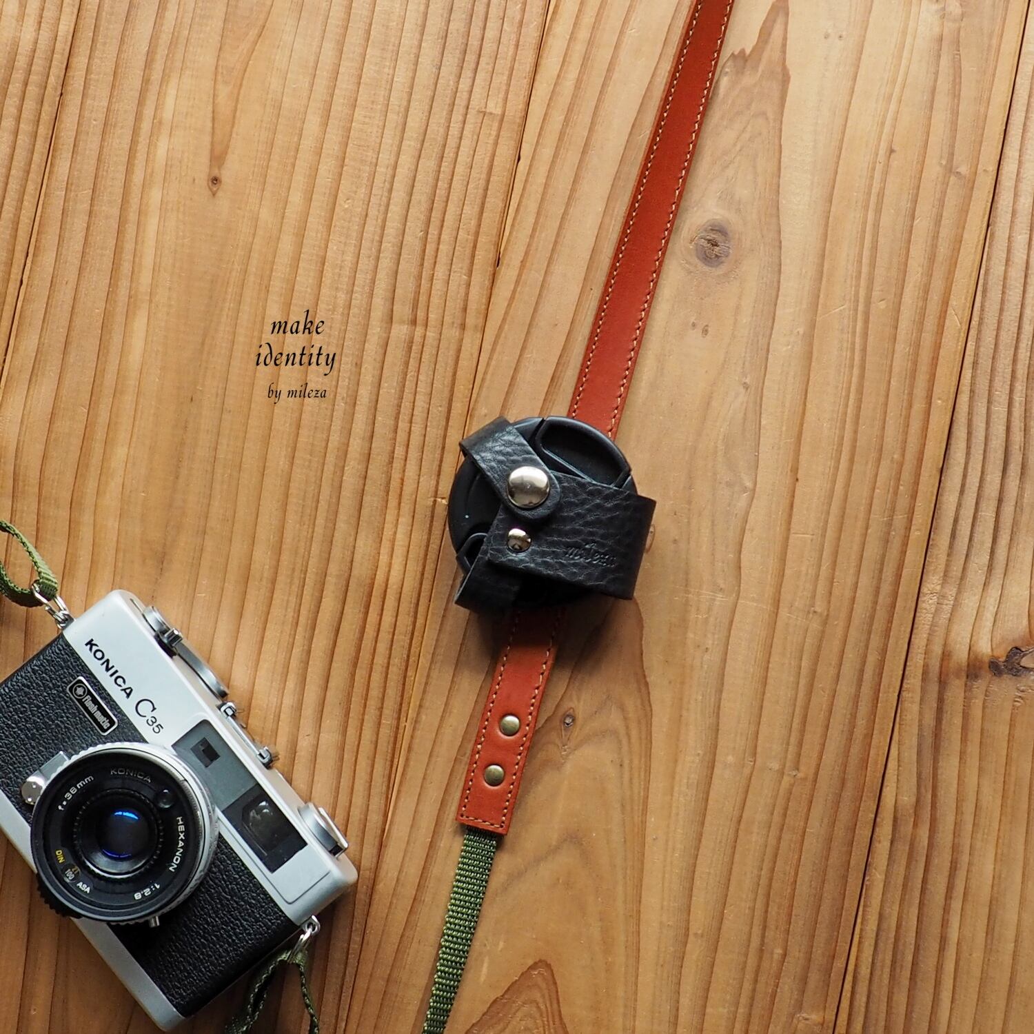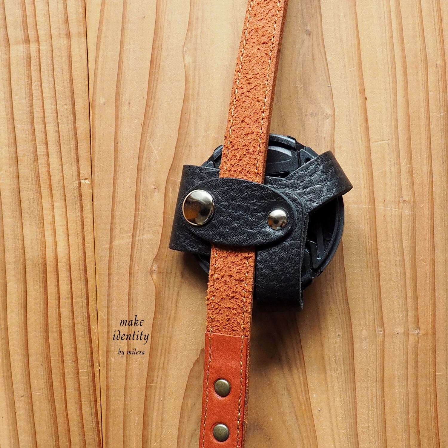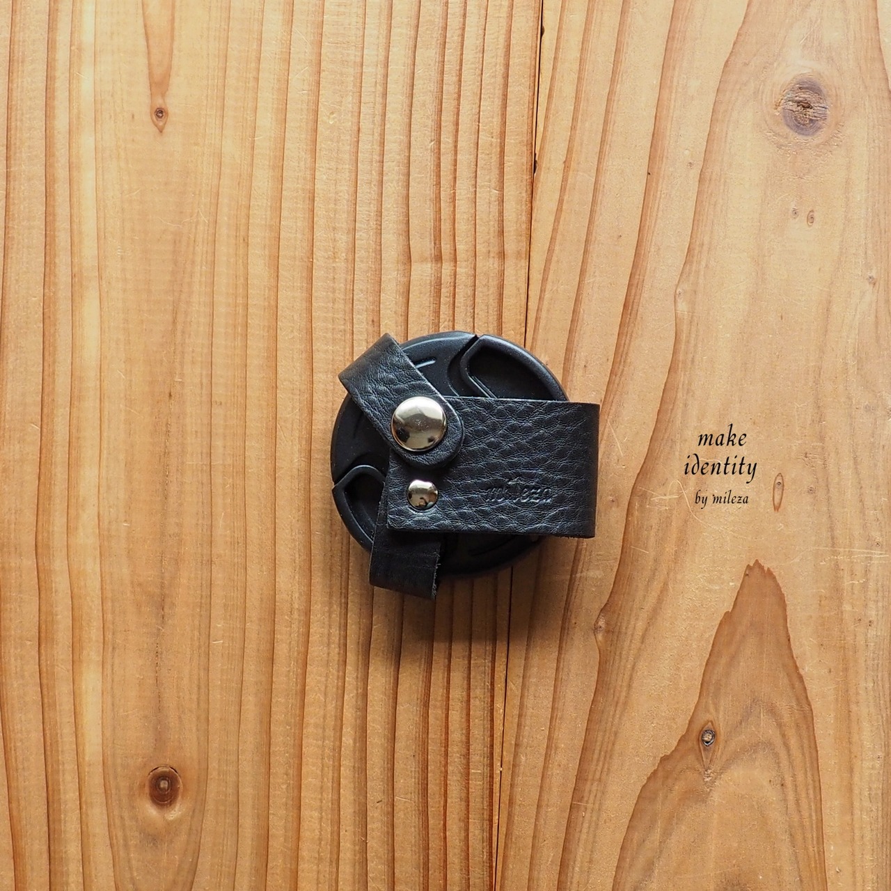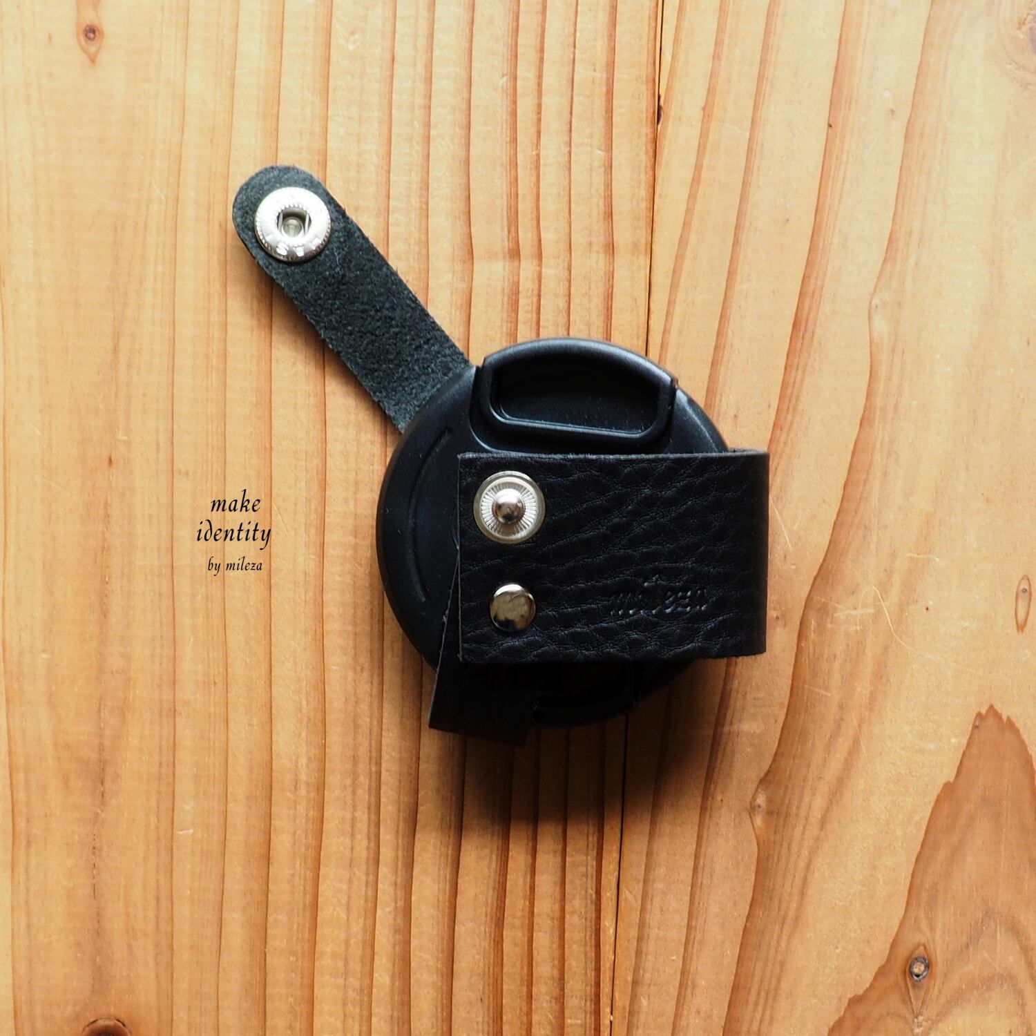 レンズキャップホルダー<革色:ブラック><キャップ外寸:直径55~58mm程度>