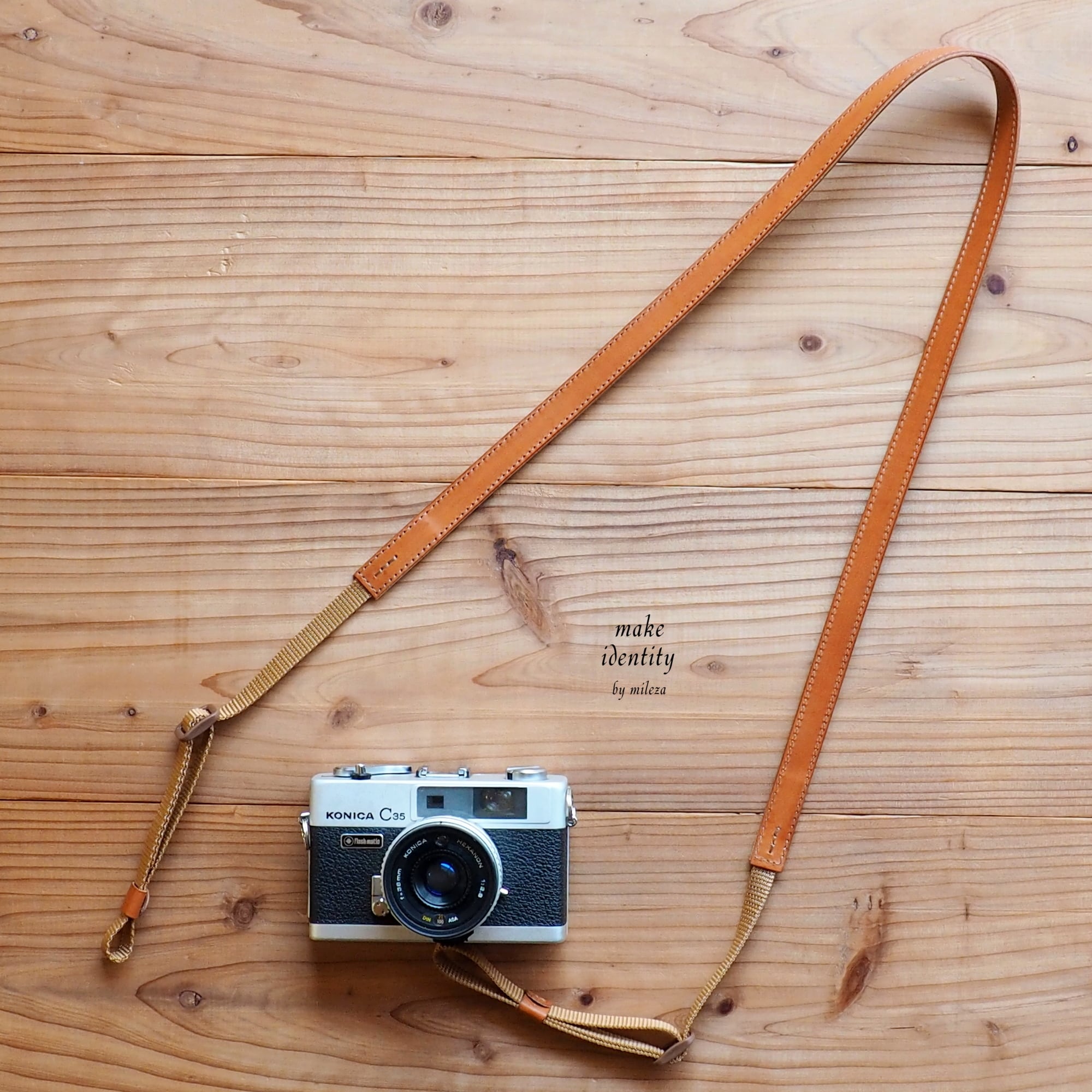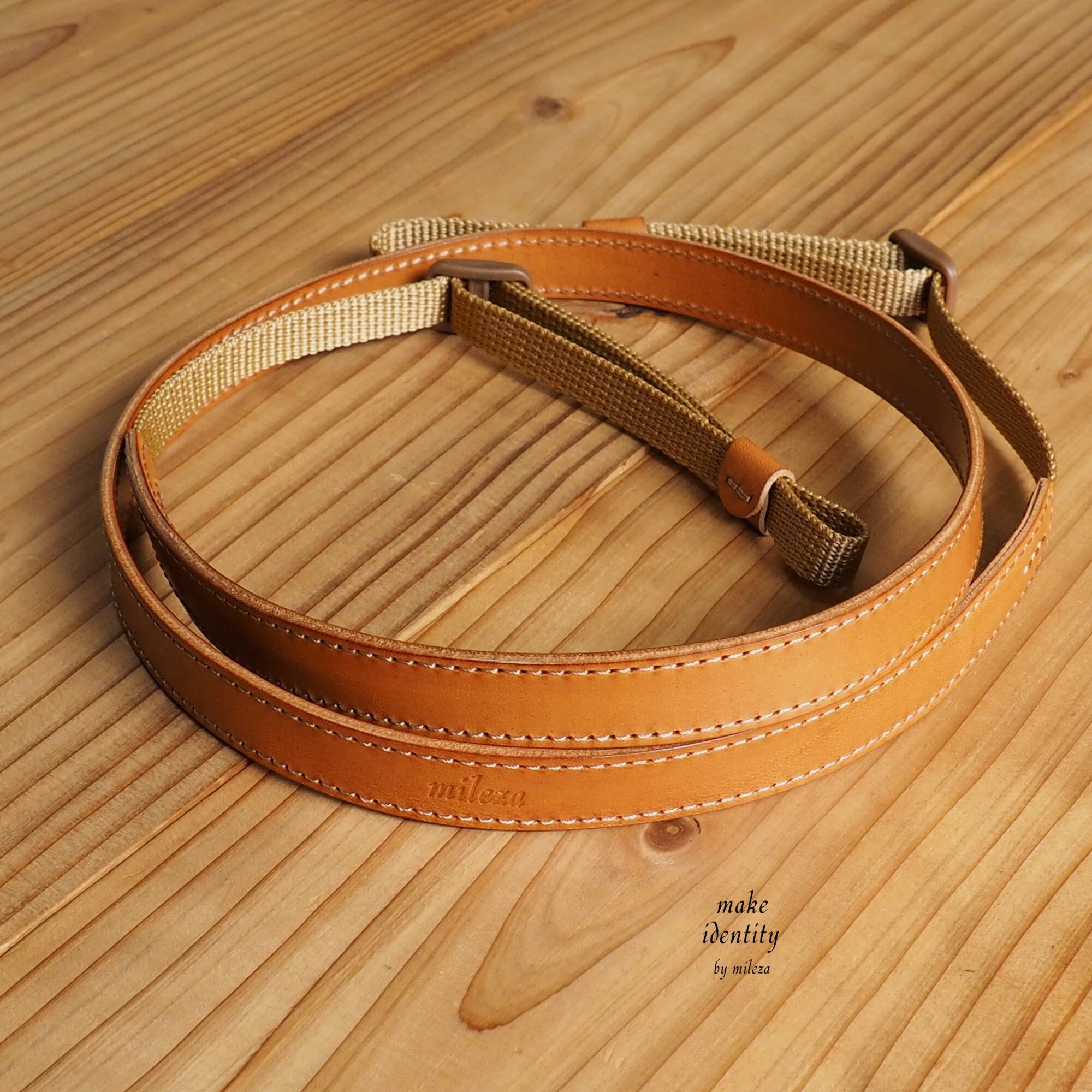 【金具不使用】Slimカメラストラップ <革色:キャメル(両面)><標準10mm幅テープ色:キャメル>