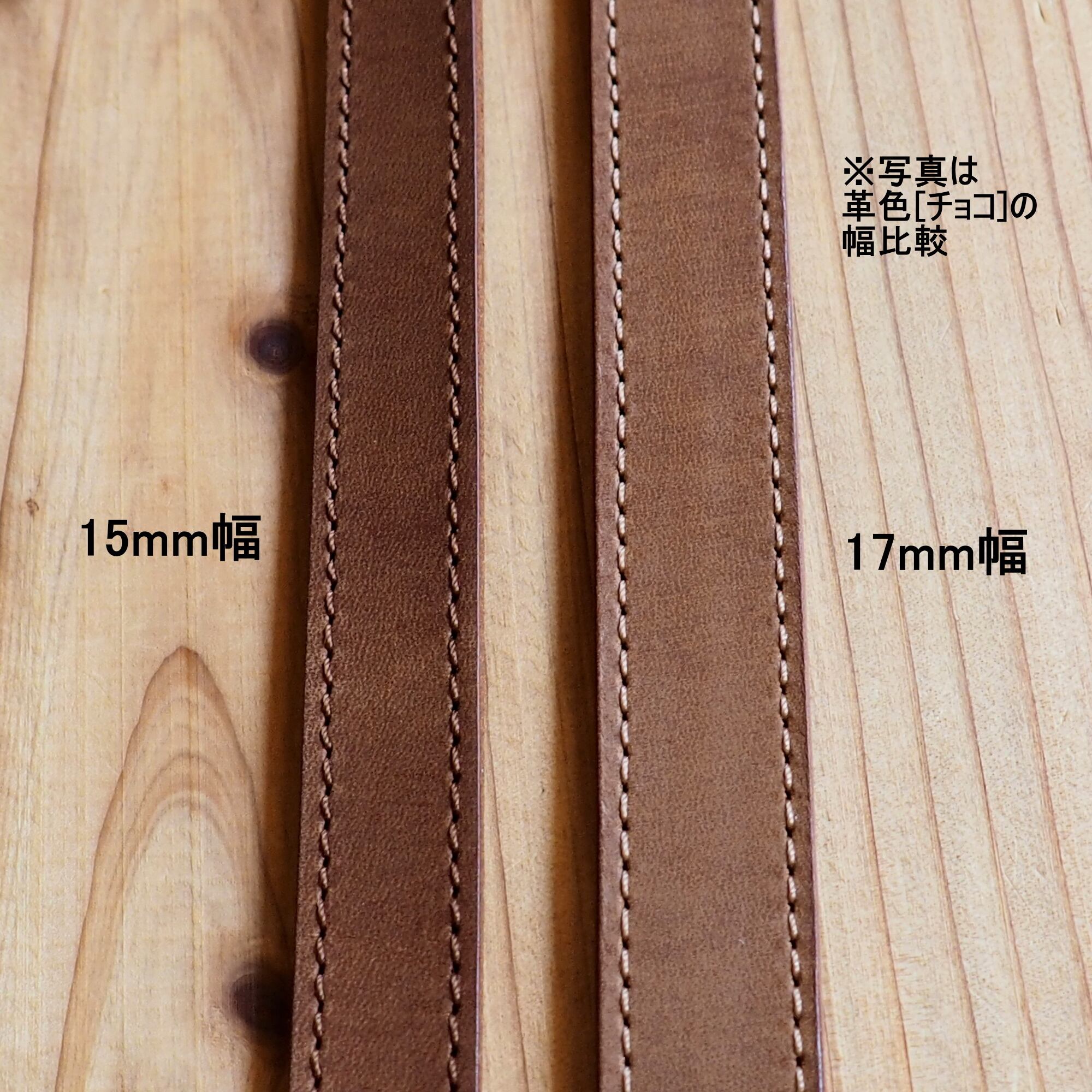 通常版革幅15mm幅より少し幅を広くしただけで印象が変わってきます。(写真2枚目)