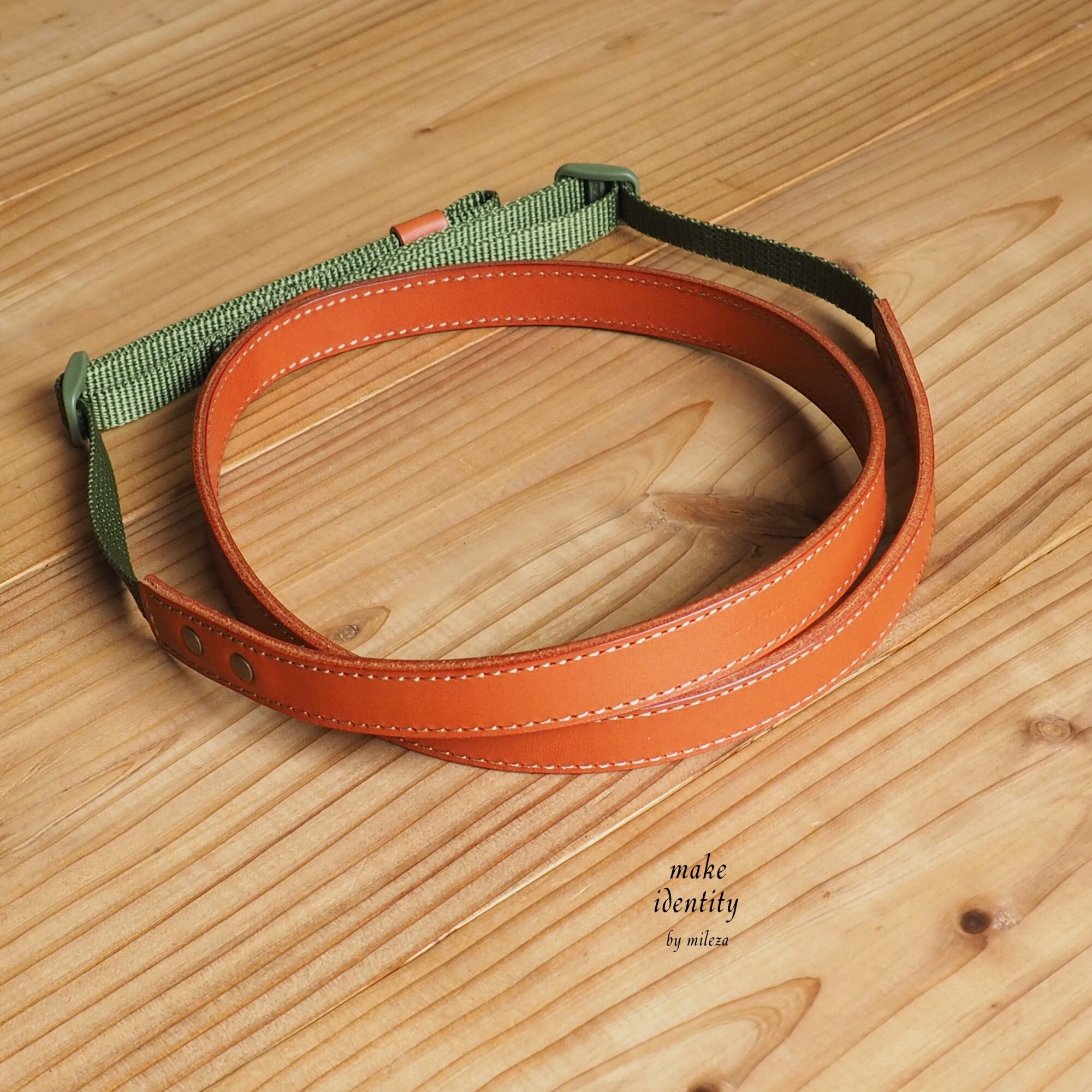 【特別仕様17mm幅】<革色:レンガ><10mm幅テープ色:カーキ>